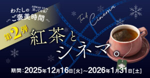 温かい飲み物がますます美味しく感じるこの季節、「アーマッドティー」の紅茶に親しんでいただくきっかけになればと、「第1弾:紅茶と私と、音楽。」、「第2弾:紅茶と私と、シネマ。」のプレゼントキャンペーンを、3ヶ月にわたって実施いたします。