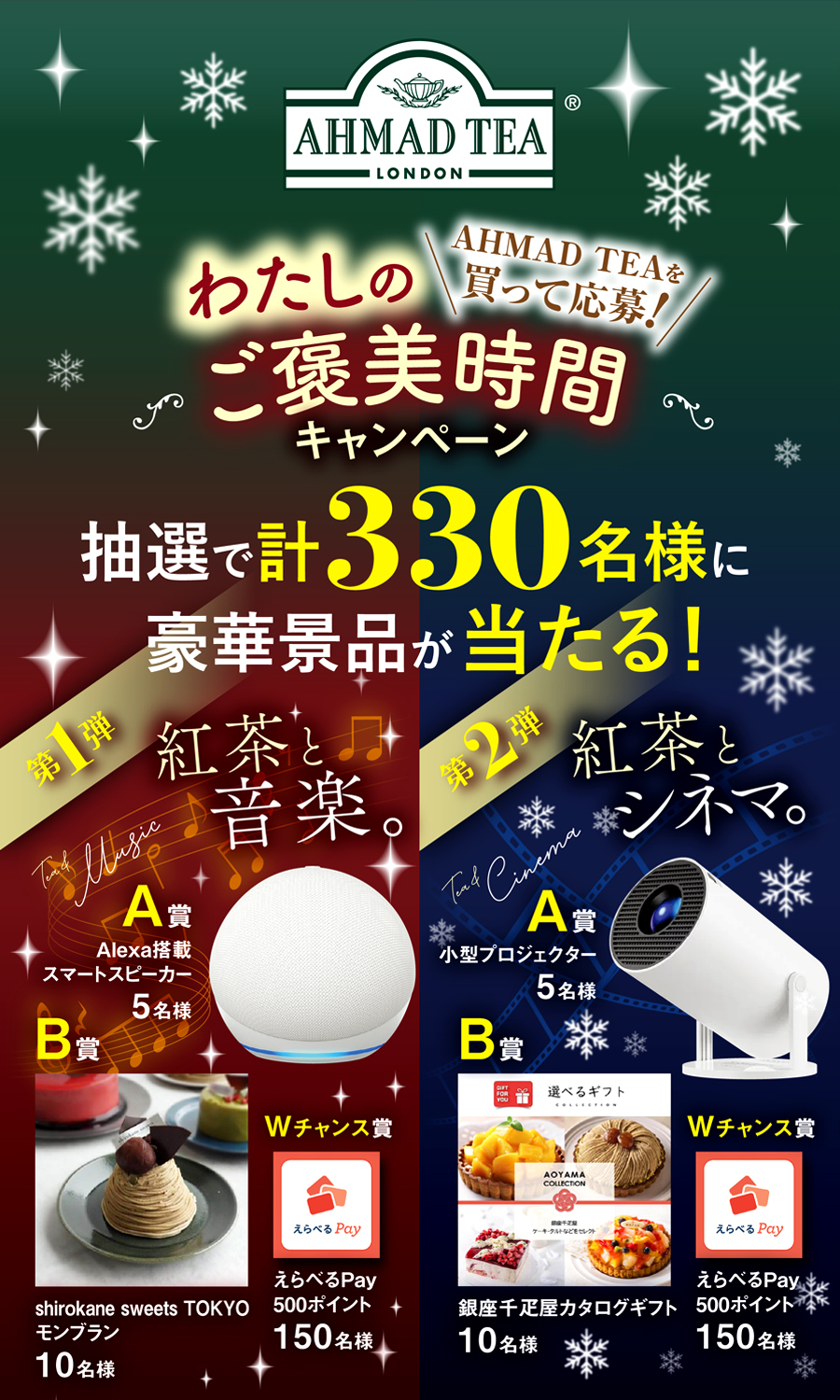富永貿易株式会社(本社:兵庫県神⼾市)は、英国紅茶ブランド「アーマッドティー」にて、「AHMAD TEAを買って応募!わたしのご褒美時間キャンペーン」を2025年11月1日より実施いたします。